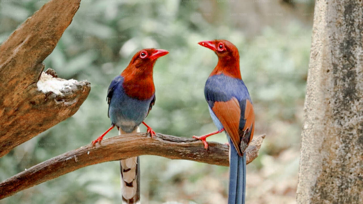 Birds: Green-Billed Coucal, Red-Faced Malkoha, Ceylon Blue Magpie, Rufous Babbler, Ceylon Hill Mynah, Ashy-Headed Laughingthrush, Whit