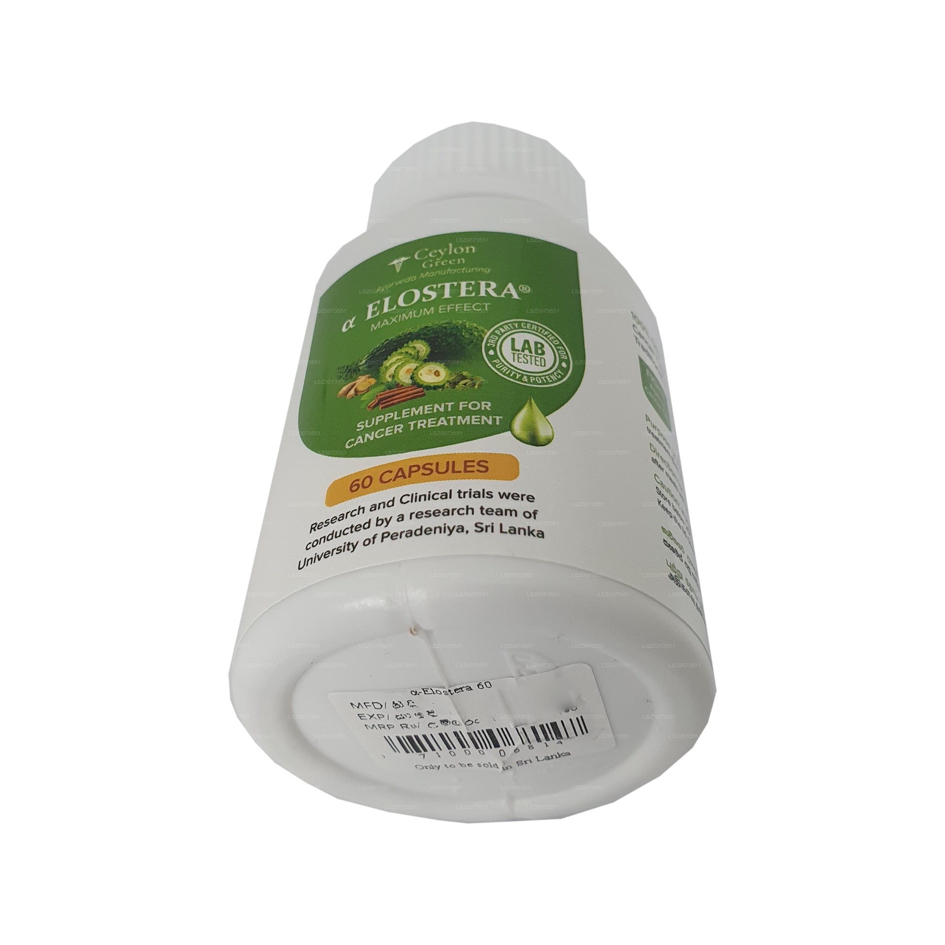 Alpha Elostera (a-elostera) عبارة عن كبسولة لعلاج السرطان يمكن استخدامها كمكمل طبي للمرضى الذين يعانون حاليًا من السرطان. هذه الكبسولة لديها القدرة على محاربة الخلايا السرطانية أثناء عملها عن طريق تثبيط نمو الخلايا السرطانية المتبقية وتقوية جهاز المناعة لمنع الانتكاس المحتمل. لديها القدرة أيضًا على تقليل الآثار الجانبية الضارة للإشعاع والعلاج الكيميائي.