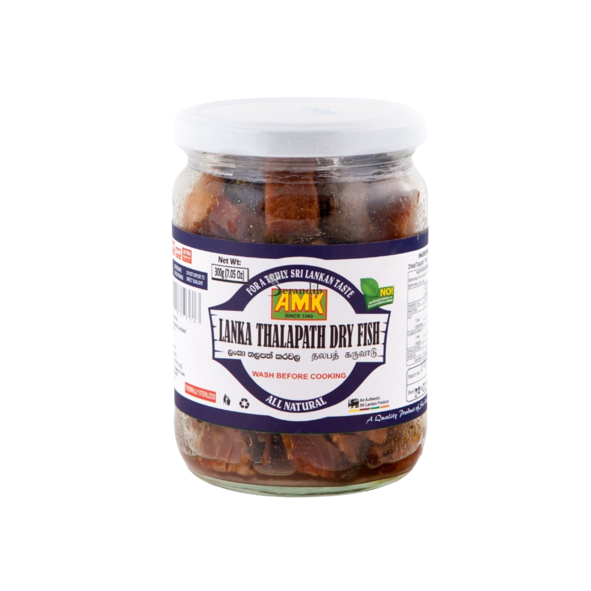 AMK Thalapath Dry Fish (300g) offers a premium selection of dried sailfish, expertly cleaned and sun-dried to preserve its rich flavor and firm texture. Known for its bold, savory taste and long shelf life, this Sri Lankan delicacy is a popular ingredient in traditional curries and stir-fries. Conveniently packed and ready to cook, AMK Thalapath Dry Fish adds authentic coastal flavor to your meals with minimal preparation.