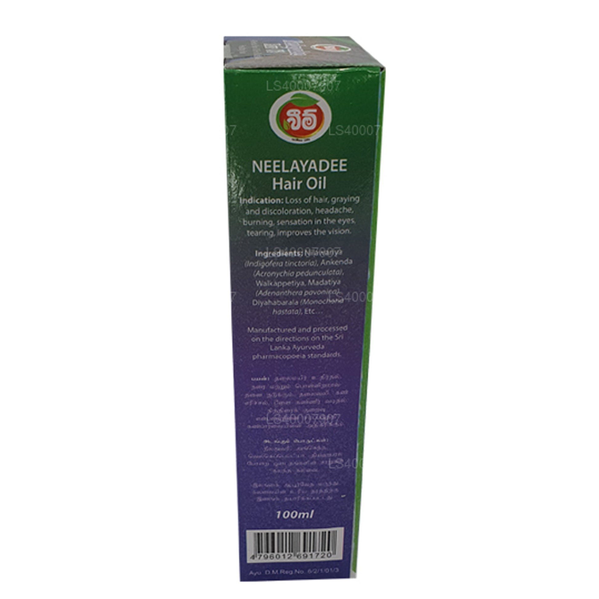 (SKU: LS4000FD1A) Beam Maha Neelayadee Oil is a hair care product crafted with traditional Sri Lankan herbal ingredients. Its formulation aims to nourish the scalp, promote hair growth, and maintain overall hair health. Ingredients like red sandalwood, Ankenda, Nil Averiya, Wal Kappetiya, and Jabara/Diya Habarela contribute to its cooling, anti-inflammatory, conditioning, and antimicrobial properties, making it an effective solution for hair care needs.