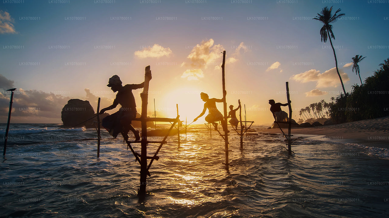Watch the captivating sight of fishermen perched on stilts in the waters along the coast of Koggala. Hear the stories of how stilt fishing came to Sri Lanka, from the mouths of the fishermen who have practiced the craft for generations. Learn how the stilt fishing is done in detail and marvel at the level of skill that goes into it. Get some amazing photographs of the fishermen silhouetted against the shoreline at sunset.