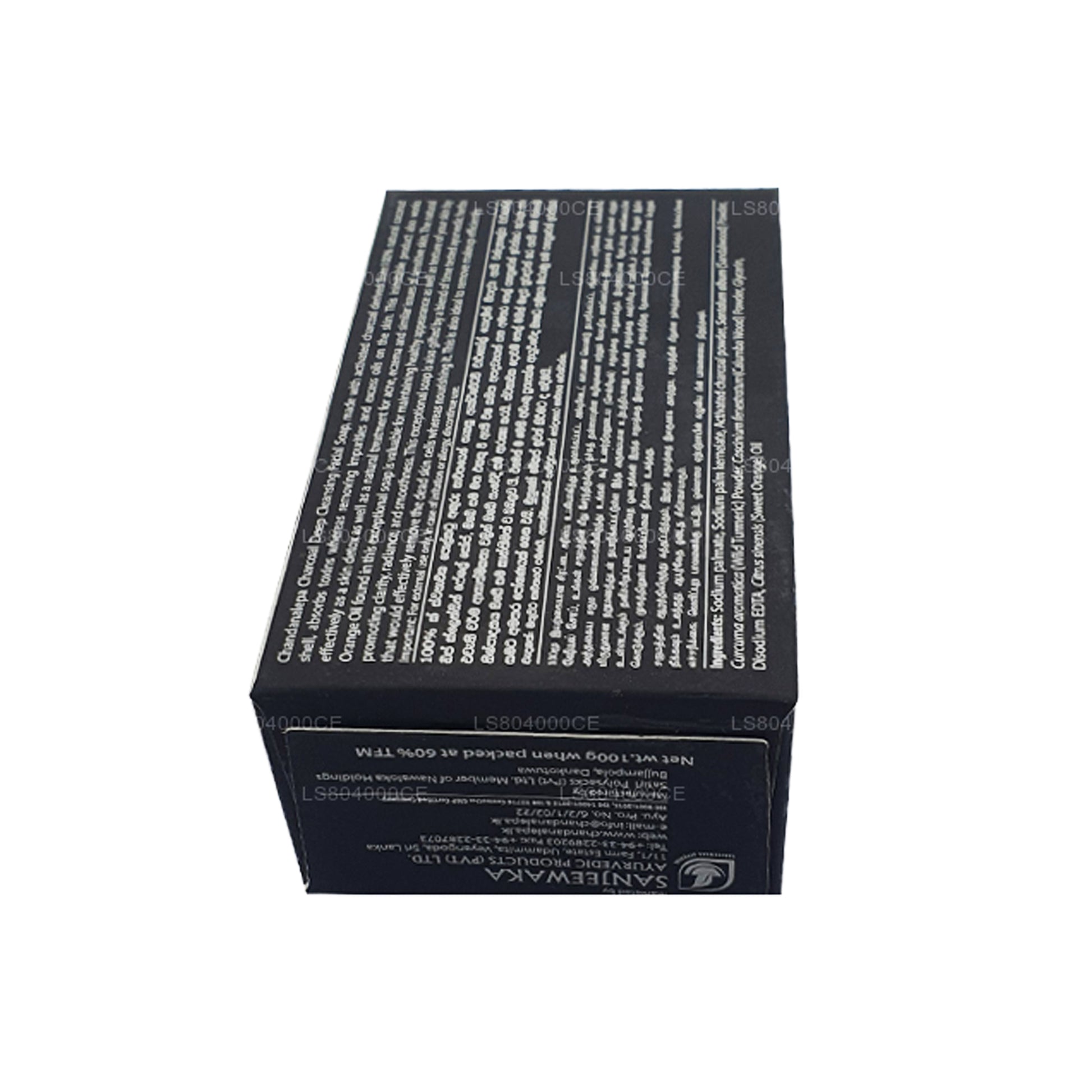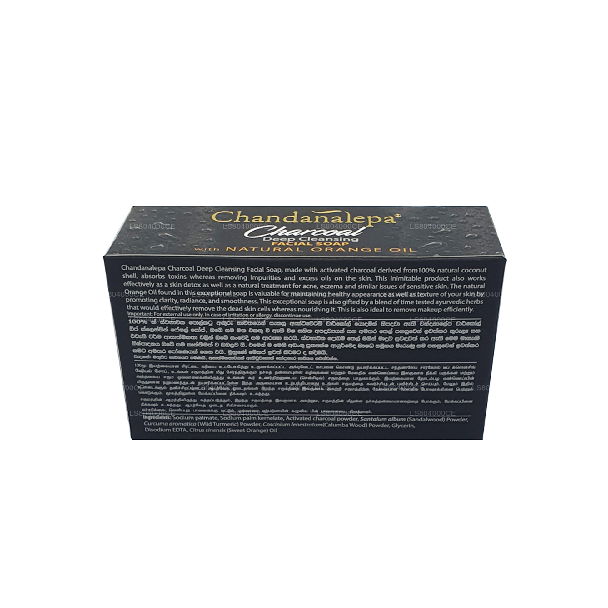 Chandanalepa Charcoal Deep Cleansing Bar produced with activated charcoal derived from 100% natural coconut shells, absorbs toxins and removes impurities and excess oils from skin. This unique product also detoxes the skin with its natural healing properties for acne, eczema and similar ailments afflicting sensitive skin. The bouquet of blended ayurvedic herbs removes dead skin cells, while nourishing the skin with each wash. Added natural Orange Oil ensures that skin stays healthy adding a clear radiance and smooth feel. Chandanalepa Charcoal Soap is also ideal for makeup removal.