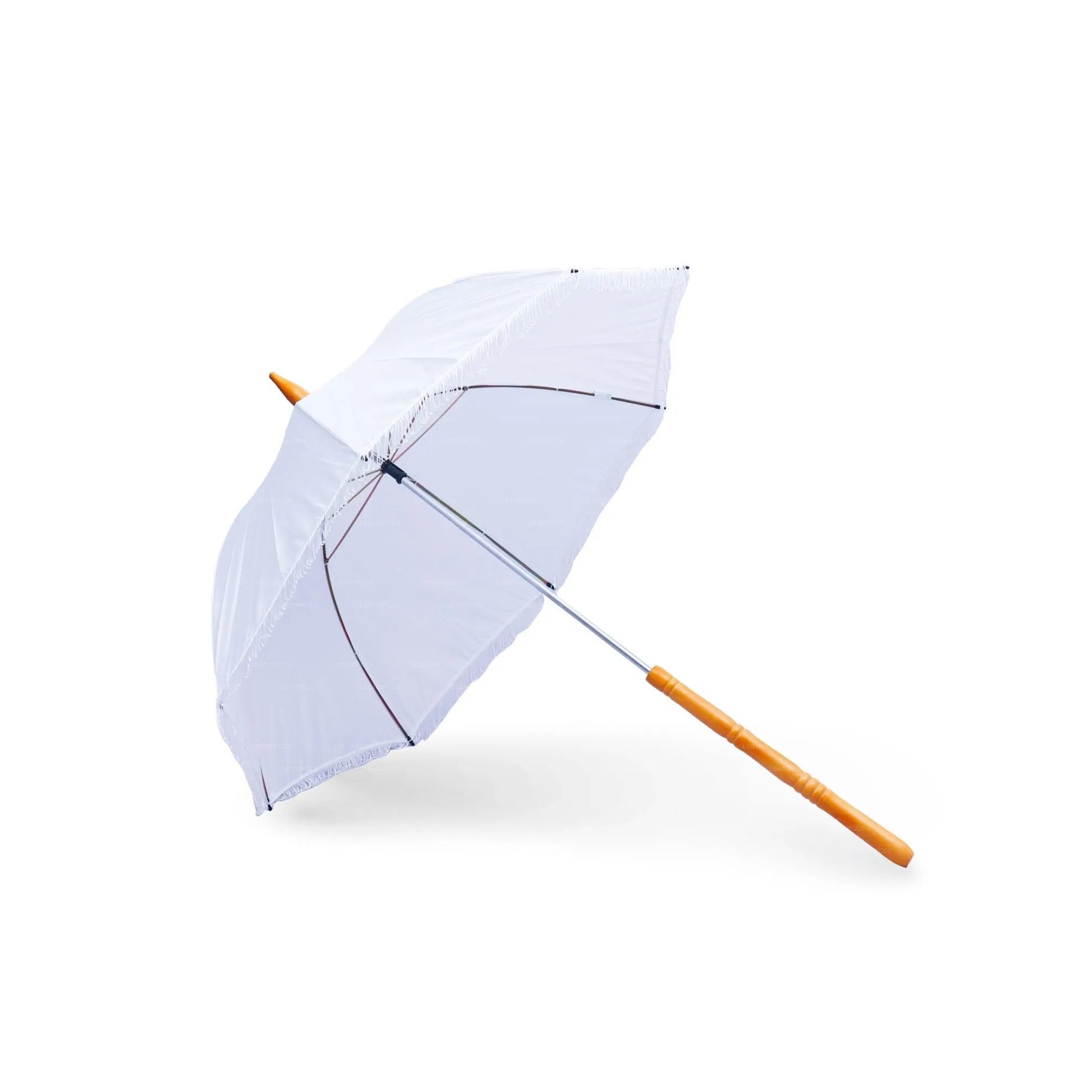 Siyarata White Pooja Muthu Kuda is a beautifully crafted ceremonial umbrella made from high-quality taffeta fabric, designed for religious and cultural occasions. Its elegant white finish, adorned with decorative details, symbolizes purity and devotion, making it ideal for temple offerings, processions, and special pooja rituals. Lightweight yet durable, this umbrella combines traditional craftsmanship with refined aesthetics, ensuring both spiritual significance and graceful presentation.