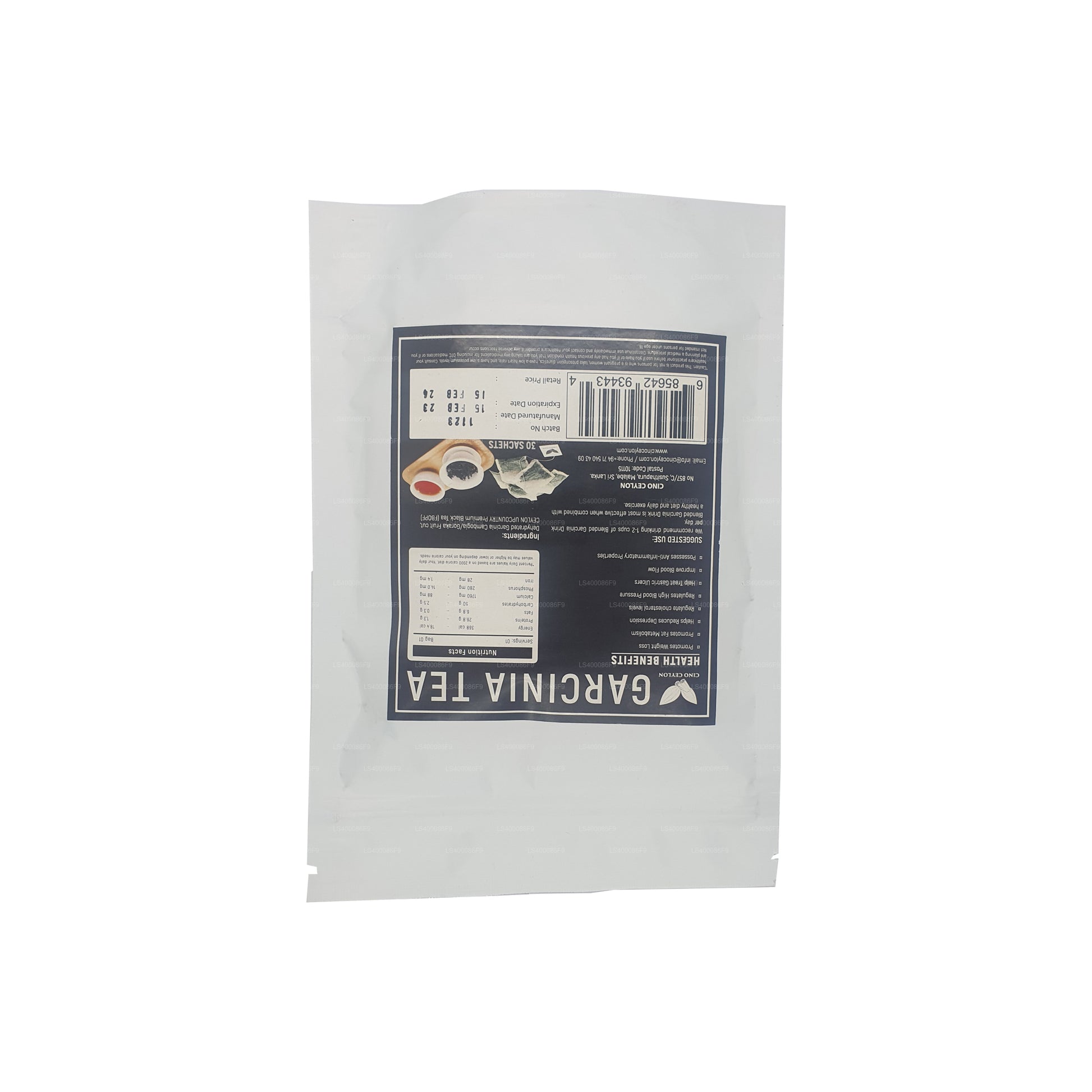 (SKU: LS400086F9) شاي سينو سيلان غارسينيا: مزيج فريد من شاي سيلان وغارسينيا كامبوغيا في 30 كيس شاي مناسب. خالٍ من الكافيين، مما قد يساعد في إدارة الوزن. يقدم نكهة منعشة مع لمحات من شاي سيلان وغارسينيا كامبوغيا. يتم الحصول عليه من مزارع الشاي السيلانية الشهيرة، مما يوفر مشروبًا متعدد الاستخدامات وسهل التحضير. استمتع بفنجان شاي لذيذ ويحتمل أن يكون مهتمًا بالصحة مع كل وجبة