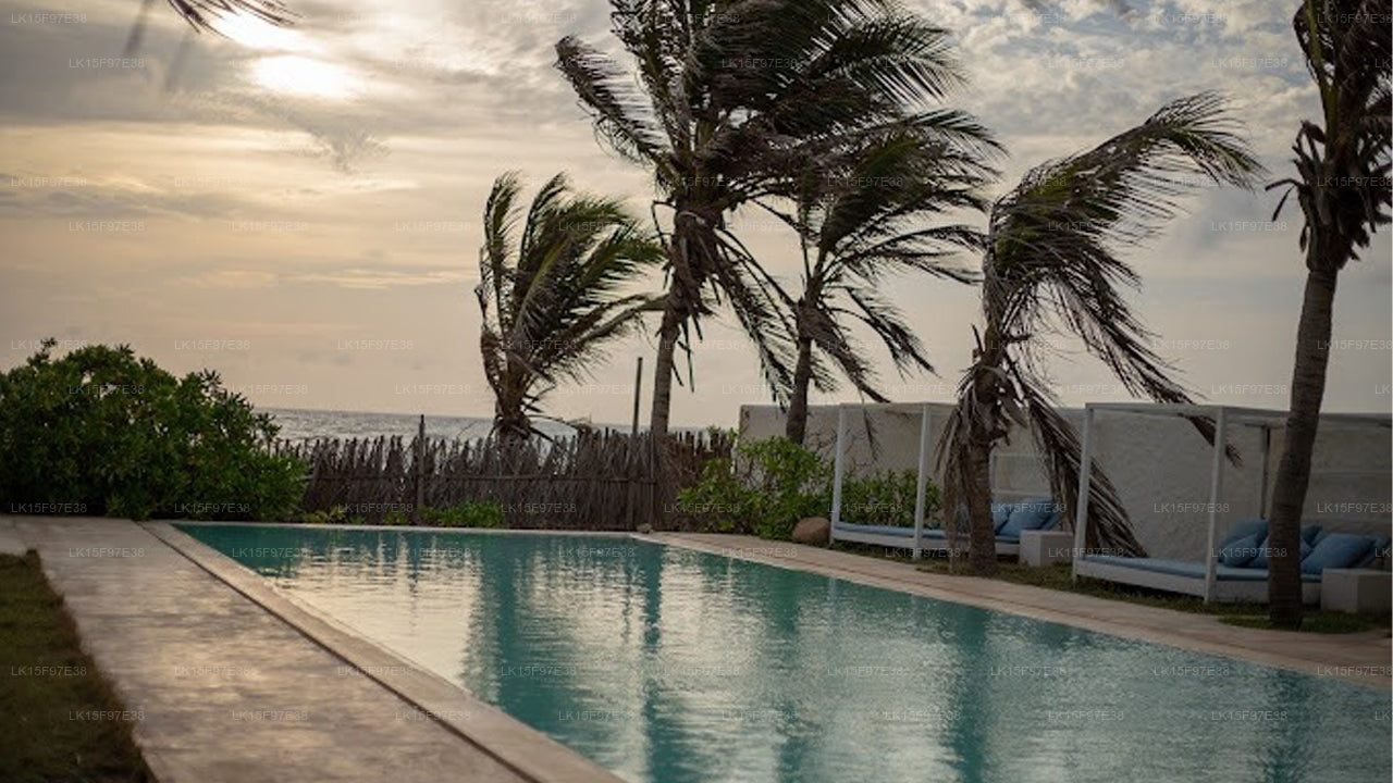 Dolphin Beach Resort on Alankuda Beach, Kalpitiya, offers luxurious eco-friendly tents, an outdoor pool, private beach access, and an open-air restaurant. Guests enjoy dolphin watching, kite surfing, and spa treatments. With family-friendly amenities and a serene tropical setting, it’s perfect for relaxation and adventure.