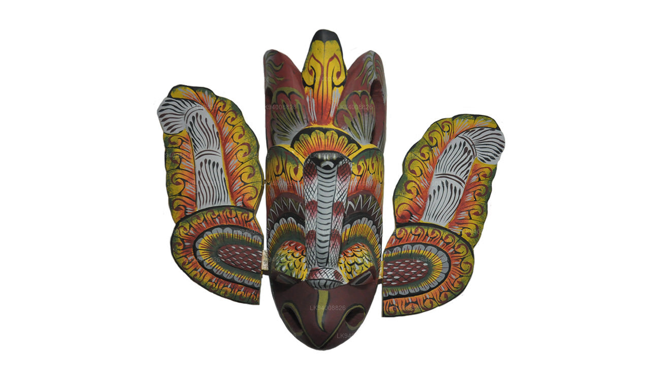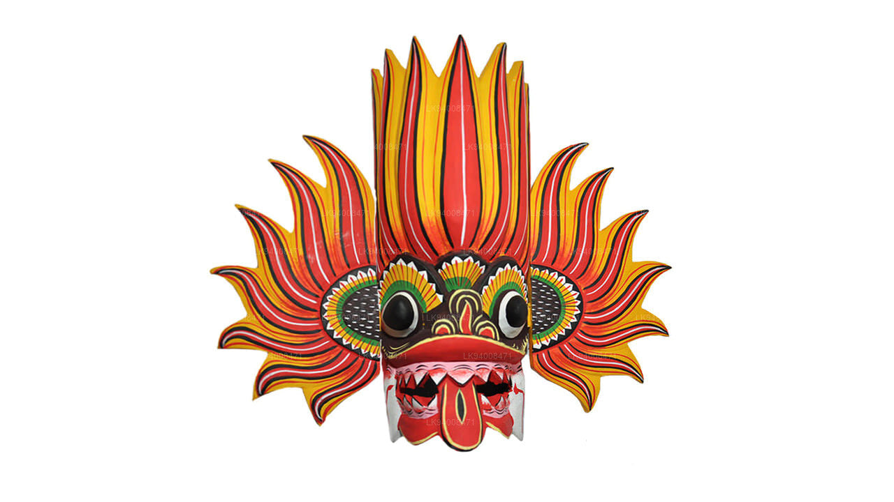 Hand crafted and hand painted – a handicraft industry that has been passed through generations depicting the colourful culture of Sri Lanka, The Fire Demon Mask is apotropaic which means its main purpose is to ward off evil. This particular mask is also used in various festivals and cultural dances. The Ginidal Raksha mask also known as the fire devil mask represents the emotion “anger” which is why the main colours that you prominently see are red, yellow and orange. The bulging eyes and protruding tongue is meant to symbolize the various types of demons.
