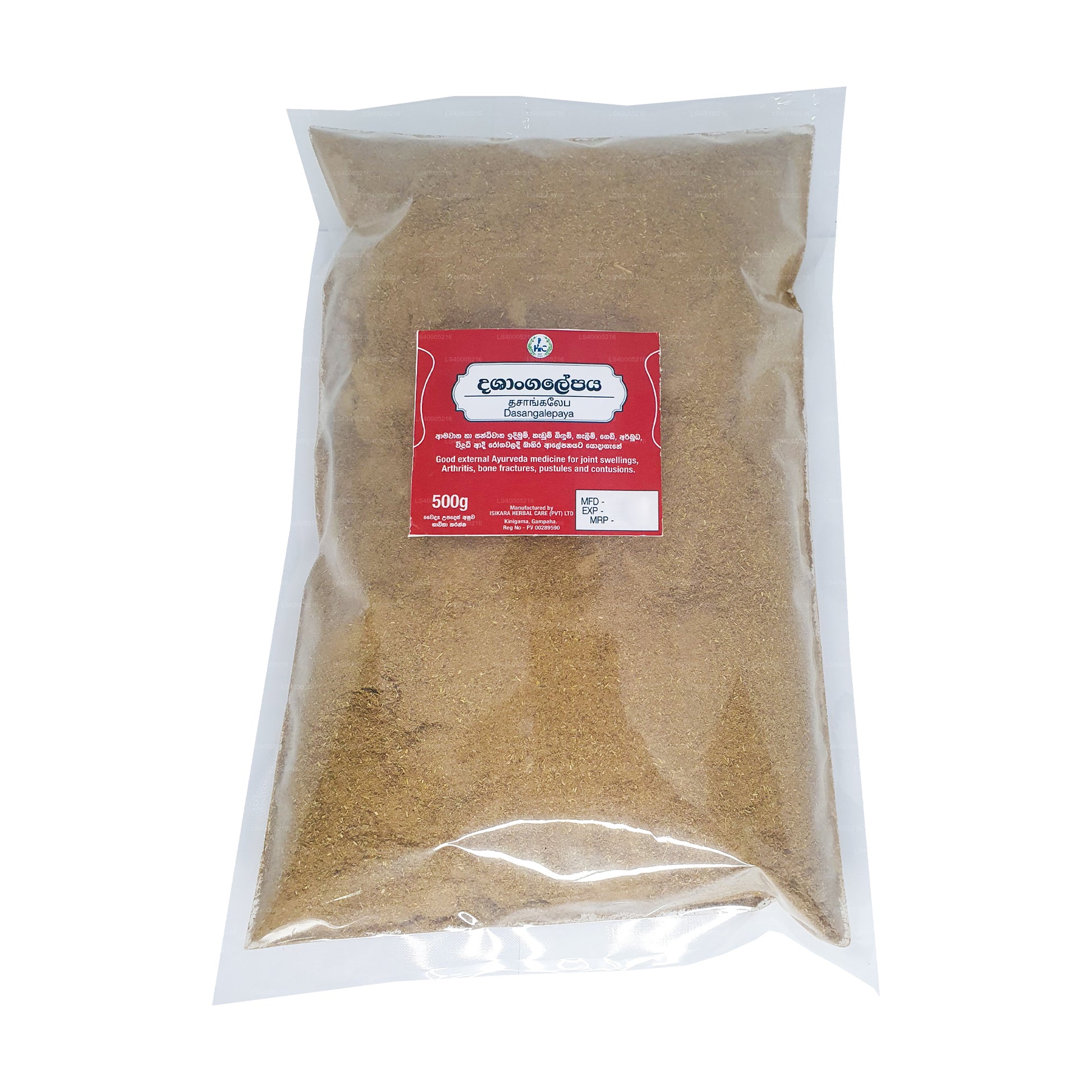 Isikara Dasangalepa churnaya, also known as Dashang Lepa Churna, is an Ayurvedic herbal paste designed for external use only. It is primarily used to treat herpes wounds, skin diseases, fever, and inflammation. The dosage is sufficient quantity required for topical application or as directed by a physician. This herbal remedy contains a blend of traditional herbs known for their therapeutic properties in Ayurveda.