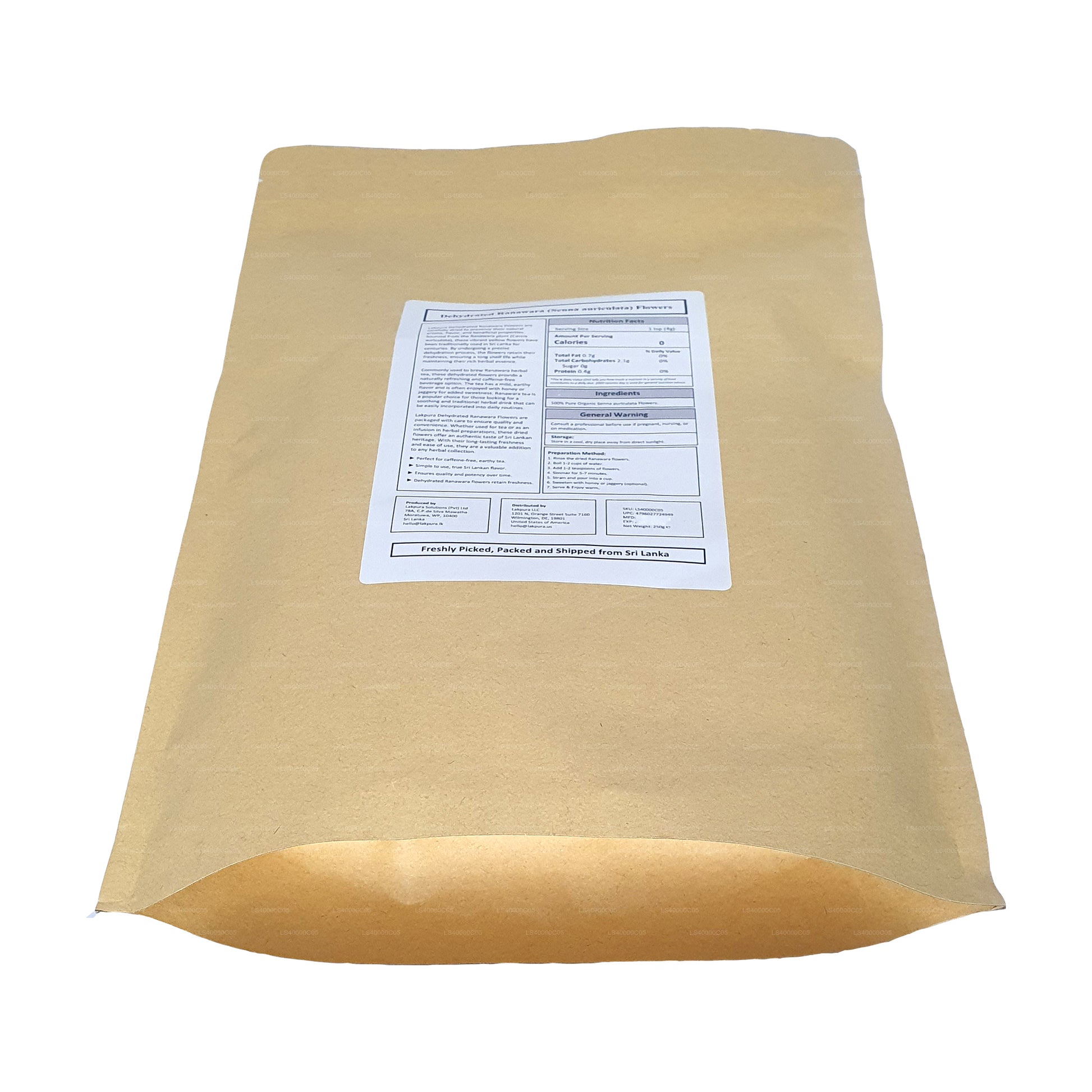 Known among locals as Ranawara and scientifically as Cassia auriculata, it is a much-branched shrub with yellow flowers and darker veins. The Ranawara plant has been a herbal remedy for centuries and is used for various ailments as well as a remedy to enhance a clear skin complexion. Our Ranawara flowers have been collected by homegrown and small-scale farmers and packed under hygienic conditions while the dehydrating process is done under low temperatures to ensure all their natural nutrients are unharmed and intact.