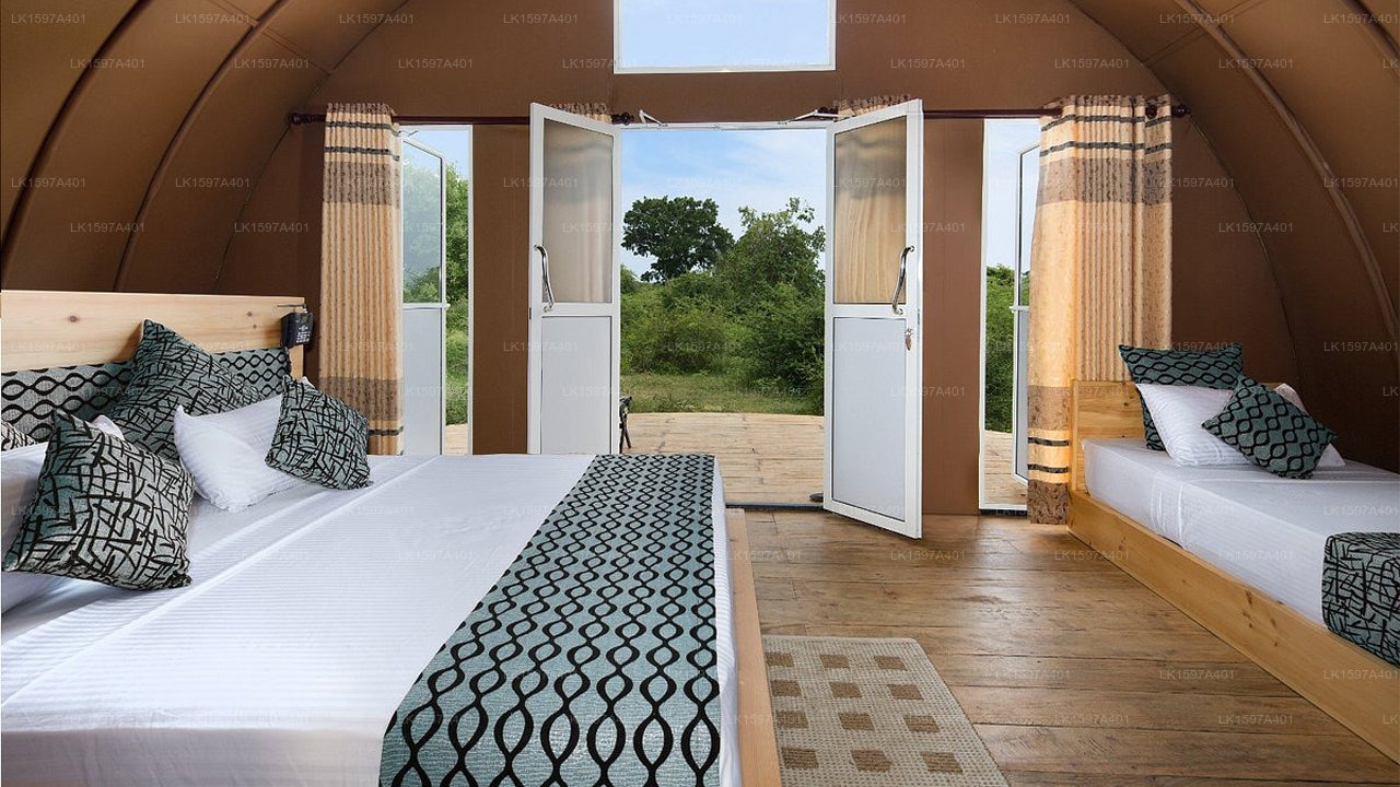 Leopard Nest Luxury Campsite is an exclusive eco-friendly retreat nestled in the wilderness of Yala. Combining luxury with nature, the campsite provides an unforgettable glamping experience for adventurers and wildlife enthusiasts.