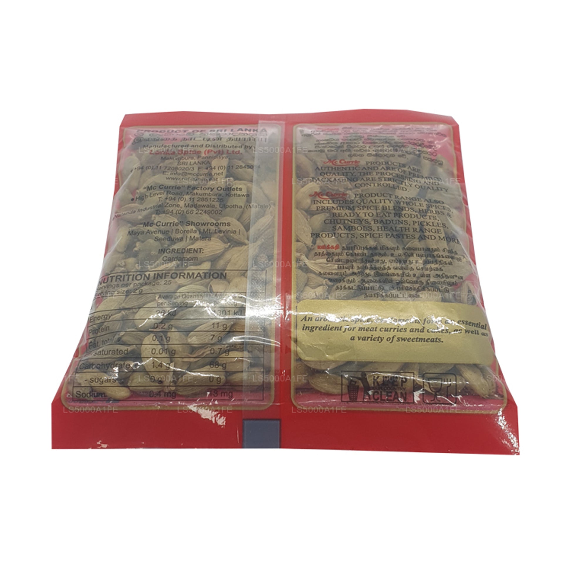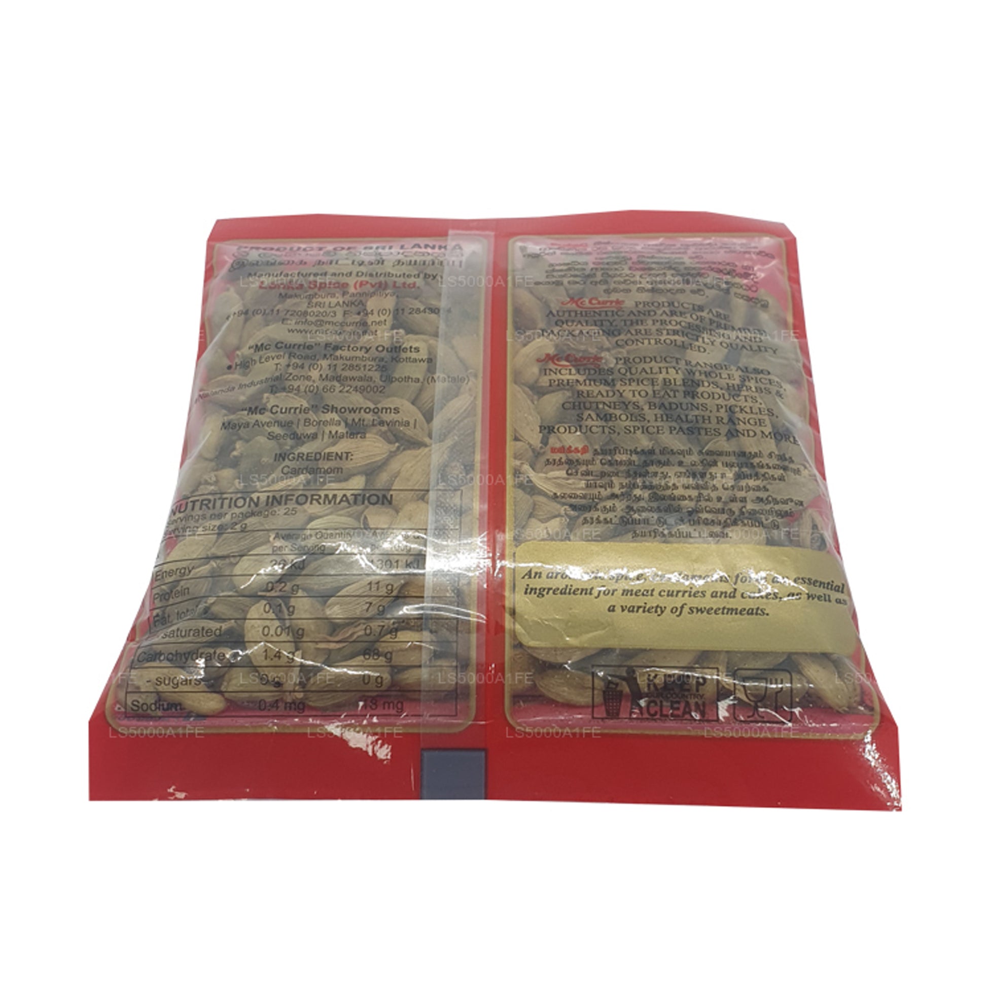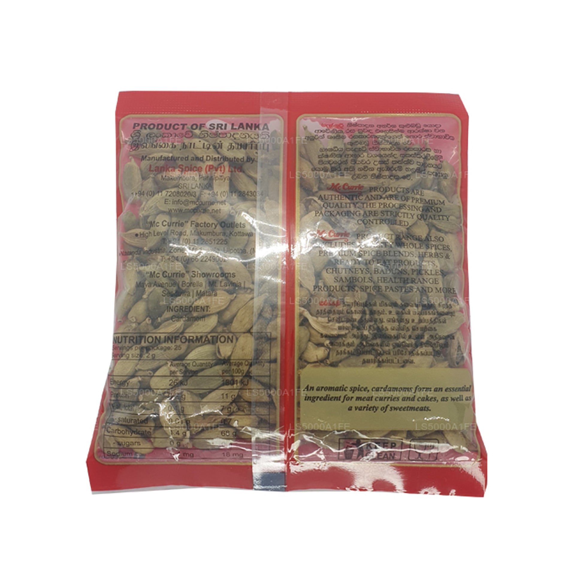 Popularly known as the "Queen of Spices", "Mc Currie" cardamoms are widely used in flavouring savoury and sweet dishes. The whole or ground cardamom adds a characteristic taste to meat and vegetable curries. Cardamoms can be used in cakes to give that subtle taste.