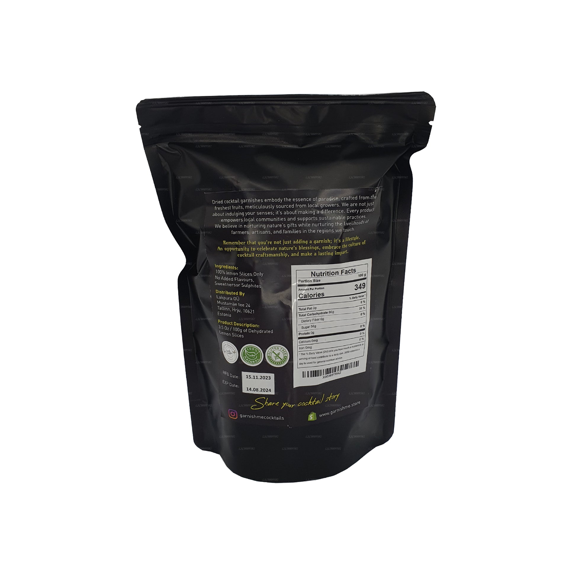 (SKU: LSC0008EE2) Garnish Dehydrated Lemon Slices (100g) are a versatile and flavorful addition to your kitchen. These carefully crafted slices retain the vibrant essence of fresh lemons while offering the convenience of extended shelf life. Perfect for garnishing salads, seafood, or grilled vegetables, these slices maintain their shape and color, adding a visually appealing touch to your dishes. They can also be used to infuse beverages, enhance baking recipes, or ground into a zest powder for seasoning. With their concentrated lemon flavor, these dehydrated slices elevate both sweet and savory creations, making them a convenient and reliable pantry staple for culinary inspiration.