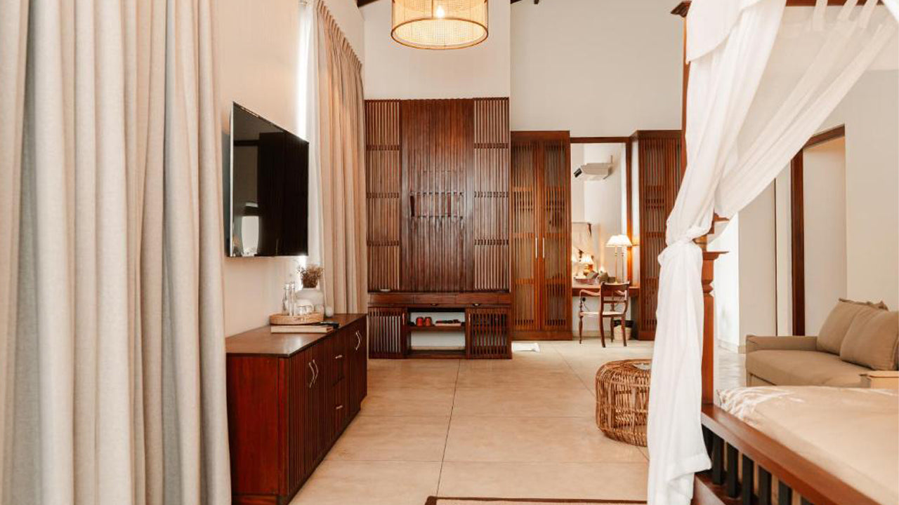 Accommodation:Mosvold Villa offers luxurious and comfortable accommodation with a blend of modern amenities and traditional Sri Lankan charm. The rooms are air-conditioned and designed to offer maximum comfort, featuring a private balcony or terrace with views of the garden, pool, or beach. Each room is well-appointed with a desk, kettle, fridge, minibar, safety deposit box, and a flat-screen TV. The private bathrooms are equipped with a bidet, and all rooms include bed linen and towels. Some rooms offer stunning views of the outdoor pool, enhancing the villa's relaxing ambiance.
