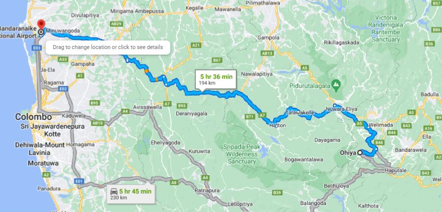 • Pick up from Ohiya and drop-off at ANY address within the city limits of Colombo Airport (CMB).