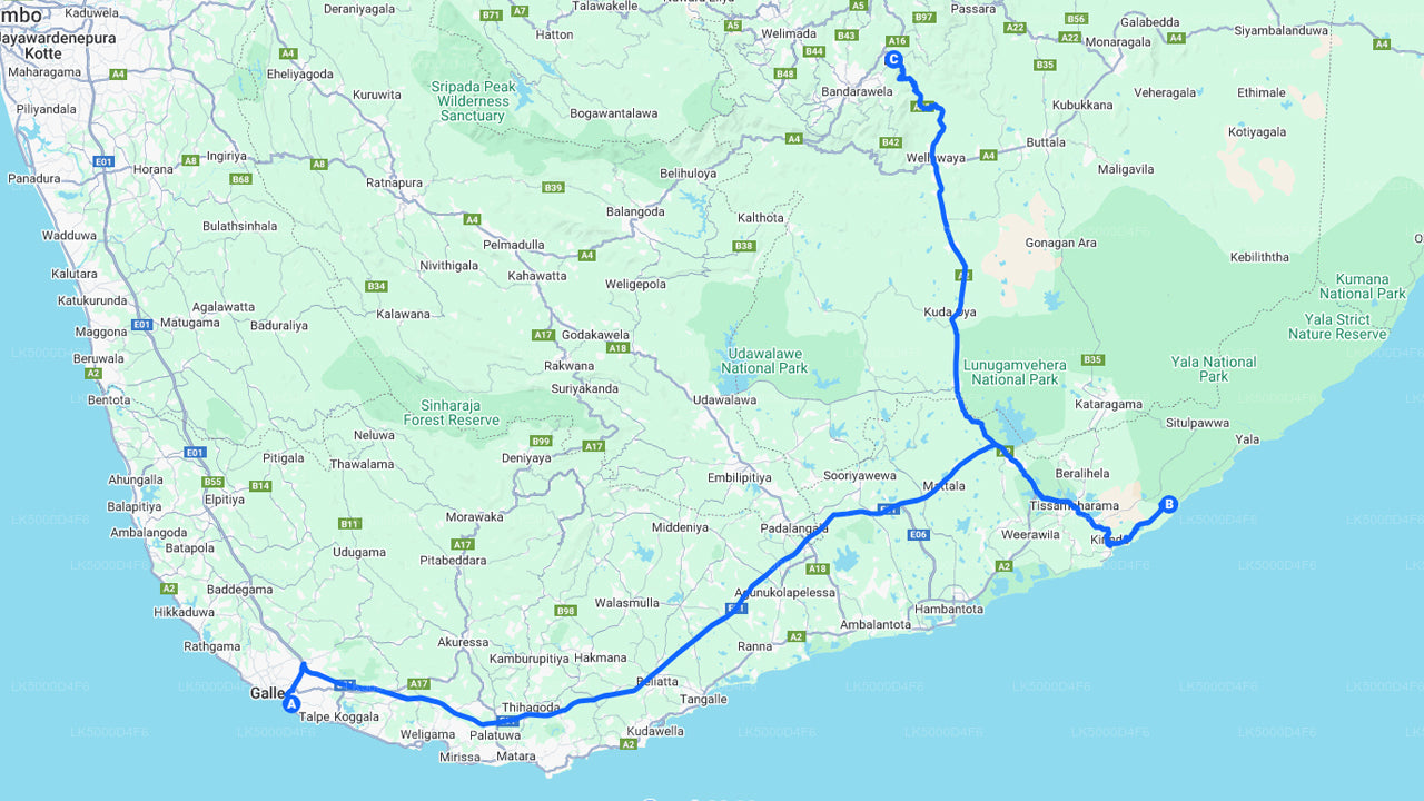 Embark on an unforgettable journey with a private transfer from Unawatuna to Ella, featuring a thrilling safari at Yala National Park. Your day begins with a pickup from Unawatuna at 12:00 PM, followed by a scenic drive through Sri Lanka’s southern landscapes. Enjoy coastal views, lush countryside, and glimpses of rural life as you make your way toward Yala.