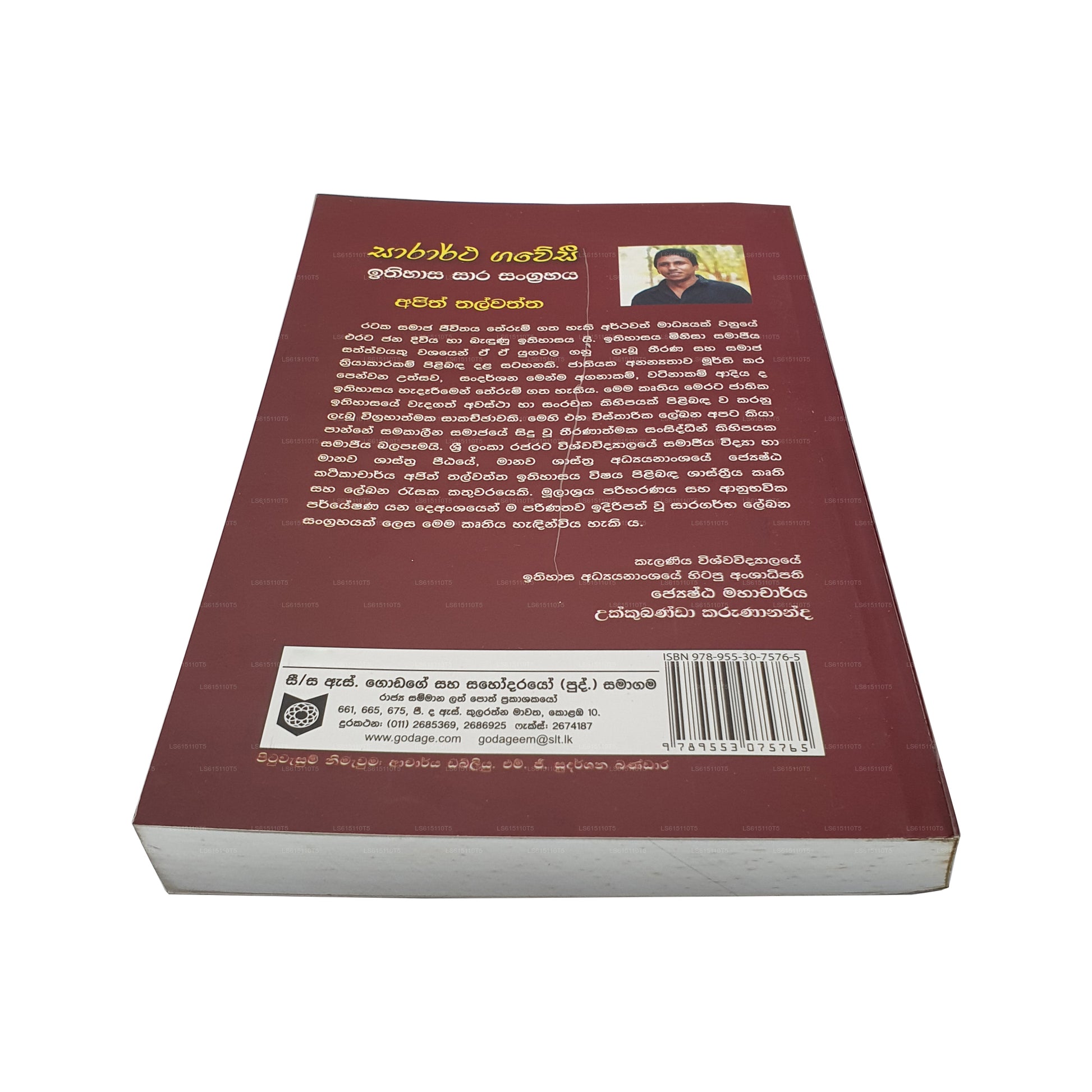 (SKU: LS615110T5) Sarartha Gawesi is an anthology of history is a compelling exploration of historical narratives published by Godage Publishers. This meticulously curated anthology takes readers on a captivating journey through different epochs, cultures, and pivotal moments in history. Each chapter unfolds as a rich and nuanced story, offering a profound understanding of the human experience. Whether you're a history enthusiast or a curious reader, "Sarartha Gawesi" promises an enlightening and enriching experience.