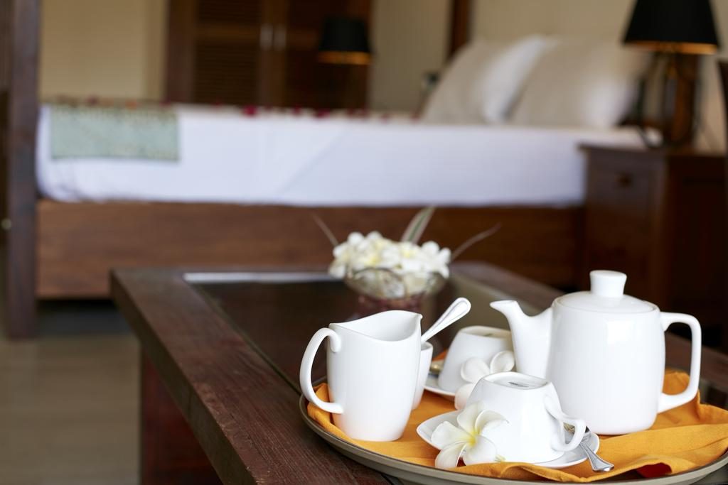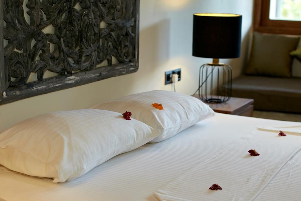 The villa features comfortable and well-appointed rooms designed with simplicity and charm. Each room includes soft bedding, private bathrooms, air conditioning, and terraces or verandas overlooking the garden and lush greenery.