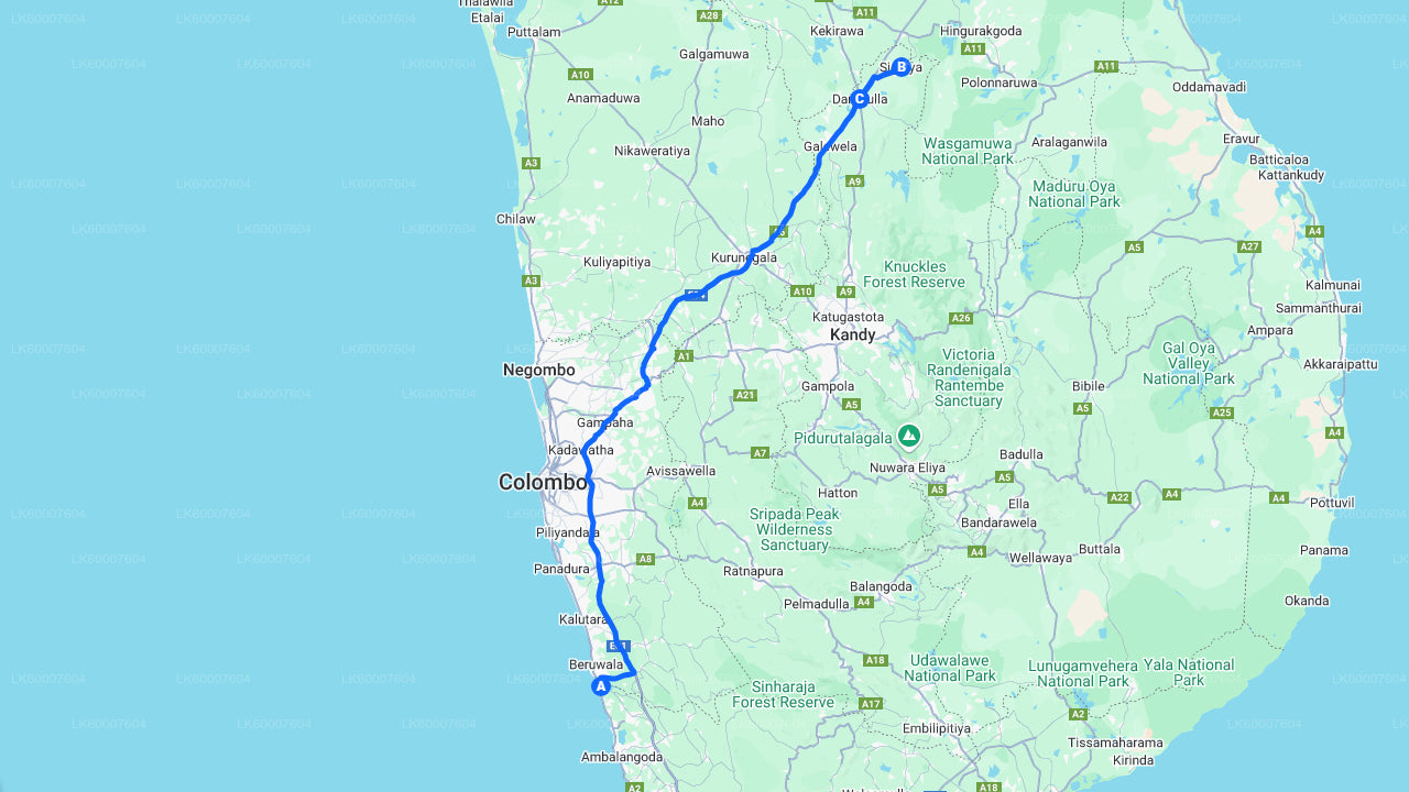Depart early from Bentota at 5:00 AM for a scenic inland drive through misty villages and lush countryside. The quiet roads and rising sun create the perfect backdrop for a peaceful start to your journey. Around 7:30 AM, take a short break for breakfast at a roadside café or rest stop, soaking in the calm of rural Sri Lanka.