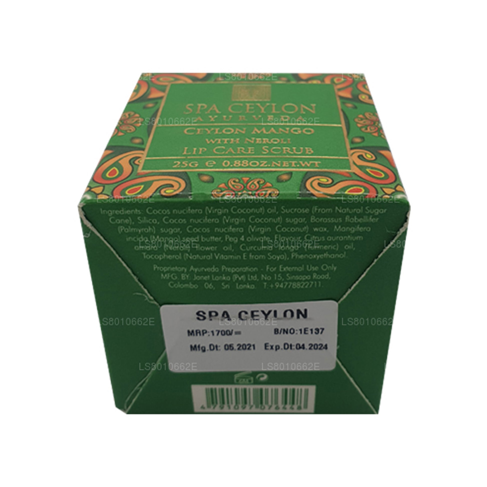 The "Spa Ceylon Mango with Neroli Lip Care Scrub" is a lip scrub weighing 25g. It combines the tropical scent of mango with the delicate floral aroma of neroli to create a luxurious lip care experience. This scrub is designed to gently exfoliate and soften the lips, removing dead skin cells and leaving them smooth and hydrated. Perfect for achieving soft and kissable lips, the Spa Ceylon Mango with Neroli Lip Care Scrub offers a rejuvenating treatment with a delightful fragrance.)