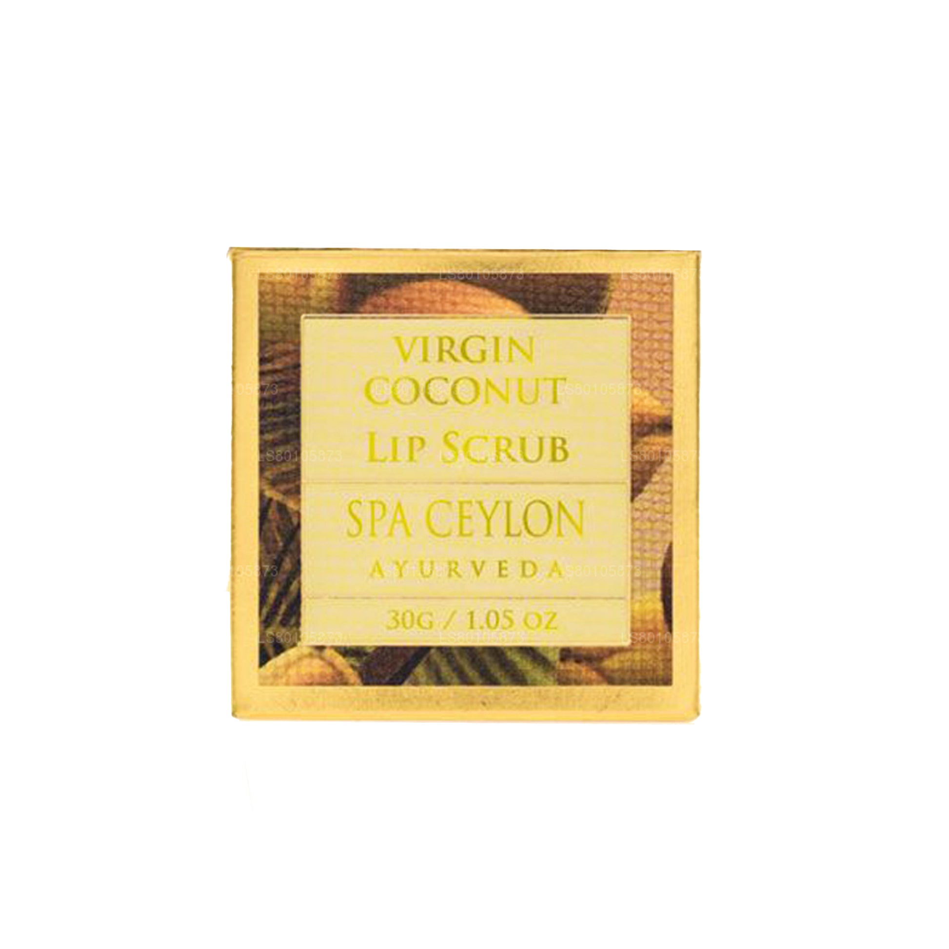 The "Spa Ceylon Virgin Coconut Lip Scrub" in a 30g container is a skincare product specifically formulated to exfoliate and moisturize the lips. Made with virgin coconut oil, this lip scrub helps to gently remove dead skin cells and rough patches from the lips, leaving them soft, smooth, and supple. The natural exfoliating particles in the scrub help to improve the texture of the lips, while the moisturizing properties of virgin coconut oil help to hydrate and nourish them. Perfect for use as part of your regular lip care routine, this lip scrub is ideal for maintaining healthy and beautiful lips.