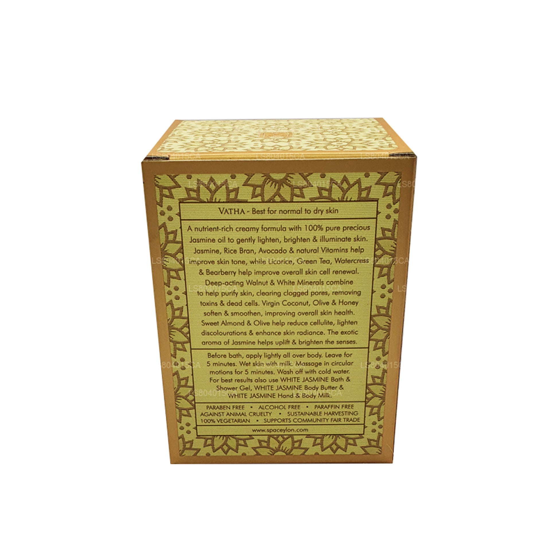 Virgin Coconut, Olive & Honey soften & smoothen, improving overall skin health. Sweet Almond & Olive help reduce cellulite, discolorations & enhance skin radiance. The exotic aroma of Jasmine helps uplift & brighten the senses.