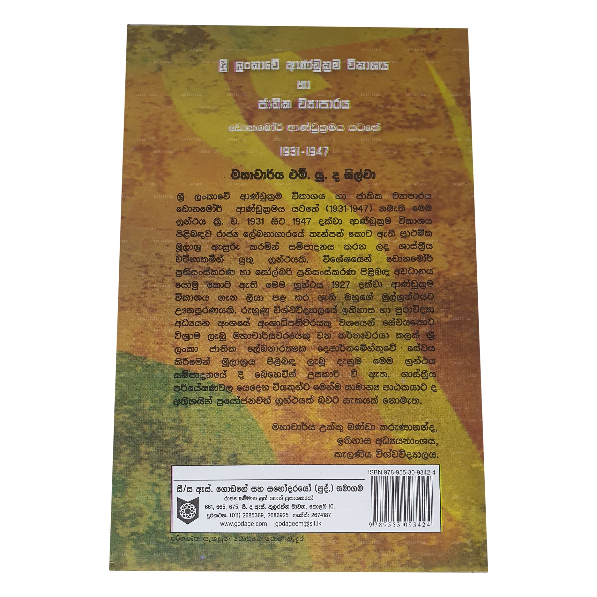 | Description | Sri Lankawe Andukrama Wikashaya Ha Jathika Wyaparaya(Donamor Andukramaya Yatathe 1931-1947) by Dr. M.U.De Silva |
