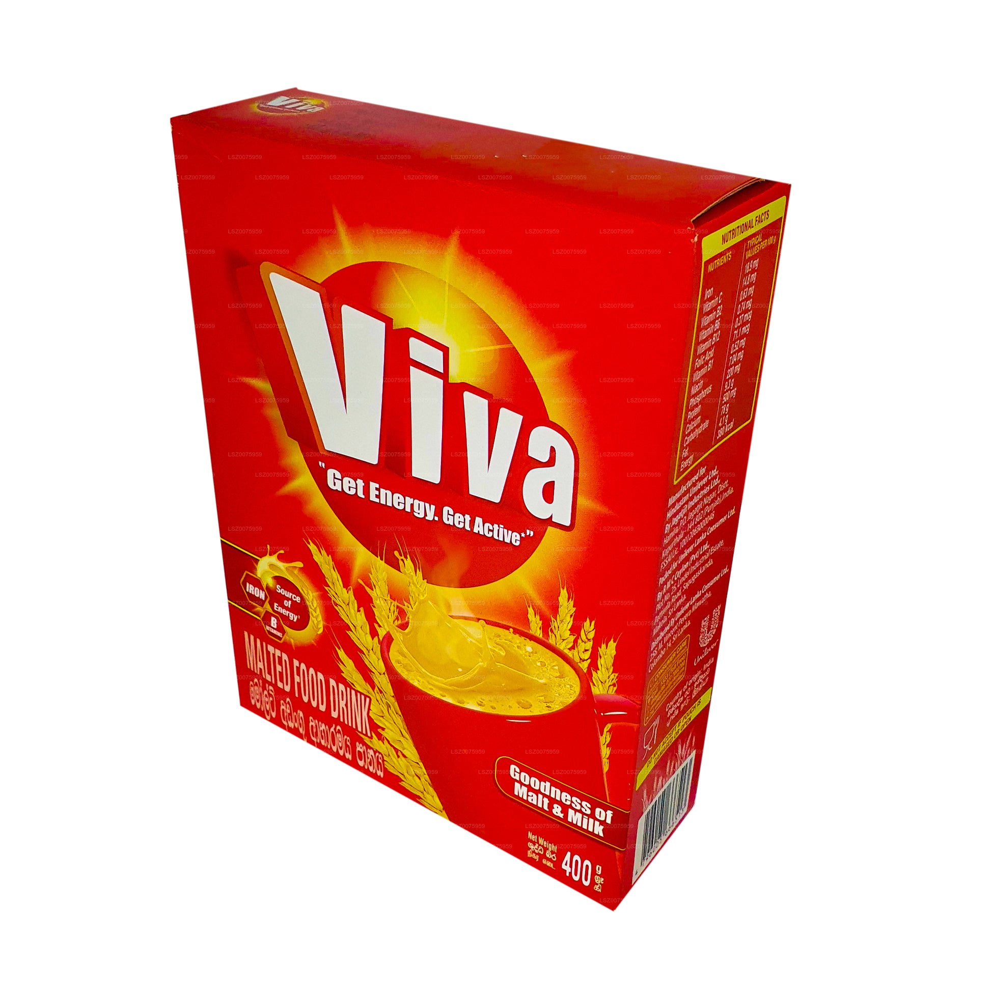 The Viva Malted Food Drink consists of your required daily intake of fat and carbohydrate which acts as a source of direct energy. The Iron in the drink contributes to the reduction of fatigue and tiredness. The Calcium helps to maintain healthy bones. The vitamins are an overall support to one’s system for proper nutrition absorption.